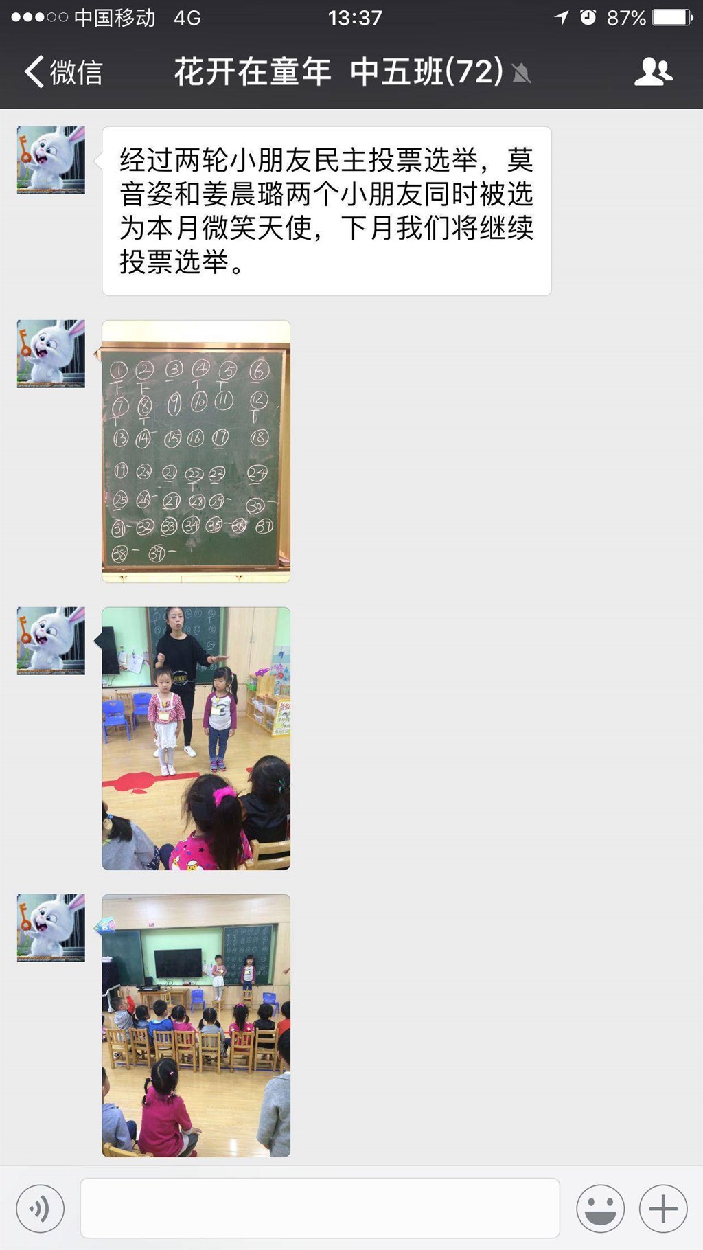 发在微信群告知家长并拍好微笑天使的照片贴在墙上。