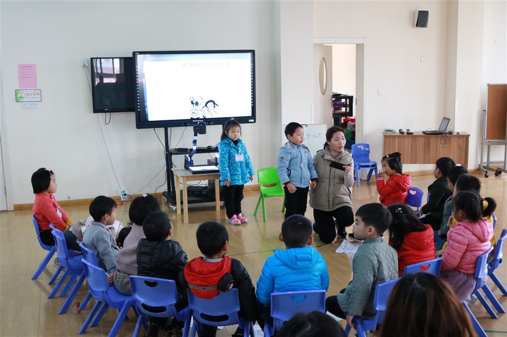 接下来陈震霞老师与中1班的孩子们为大家展示了一节谈话活动《我与植物的故事》。活动中,孩子们就自己与植物发生的故事展开分享与讨论,期间有肯定、有质疑、有建议,而陈老师耐心倾听,适时助推,让大家看到了一个个独一无二的鲜活的儿童。