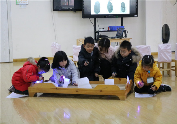 我园贡玲老师和大班的孩子们带来了科学集体活动《金鱼失窃案》,该活动通过创设情境的方式把孩子们带入到警察查案的情境中,围绕老爷爷丢失名贵金鱼——查找、比对犯罪嫌疑人在屋内留下的指纹——利用表格记录,分析、判断谁是小偷进行推进。在游戏过程中,孩子们一起合作、分析问题,解决问题的品质得到了提升。